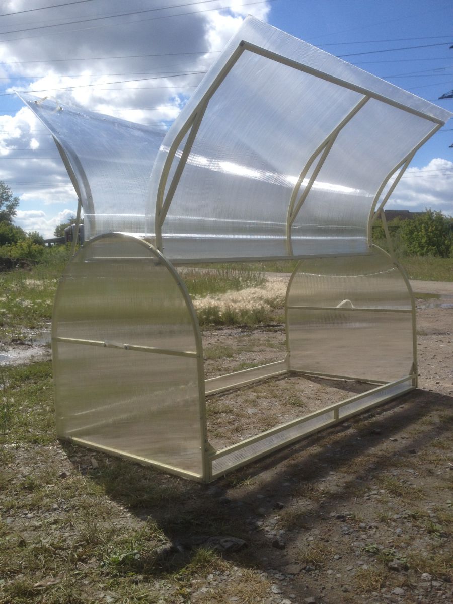 В основе парника - надежный каркас из профильных труб квадратного сечения. Покрытие изготавливается из сотового поликарбоната - теплоизоляционного светопрозрачного материала, известного своей прочностью и надежностью.